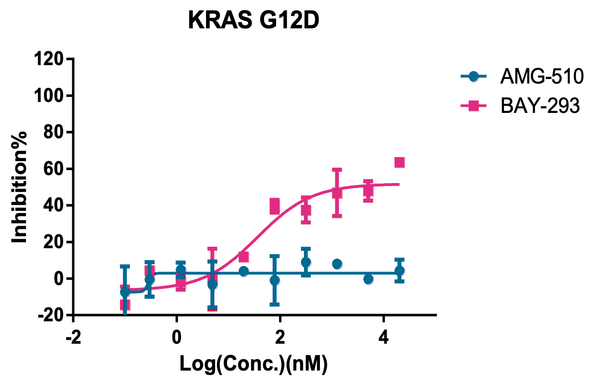 The inhibitory effect of AMG-510 and BAY-293 on KRAS-wt, KRAS(G12C), & KRAS(G12D)