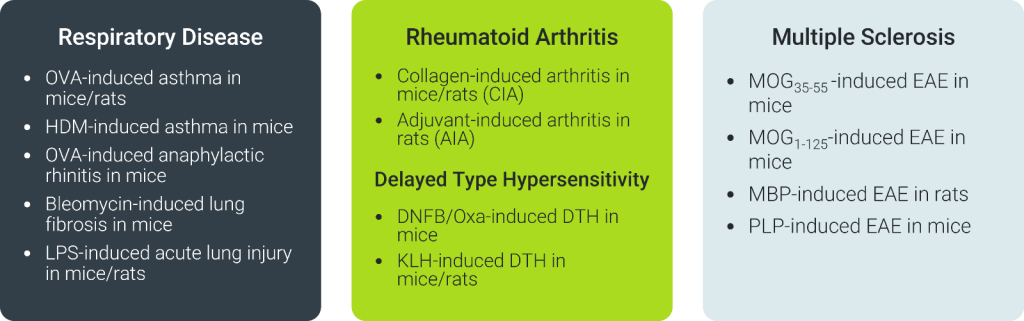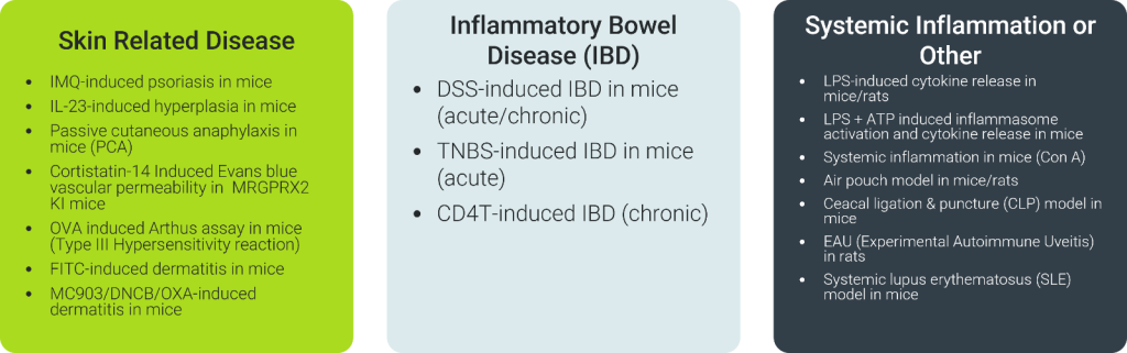 With over 30 validated in vivo models tailored to mimic cytokine-driven diseases, ChemPartner’s platform bridges discovery to clinic through rigorous, versatile evaluation in relevant physiological contexts. From respiratory conditions, RA, MS, IBD, skin disorders such as psoriasis and dermatitis models, delayed-type hypersensitivity, and systemic inflammation, these models integrate pharmacodynamic and pharmacokinetic endpoints to assess exposure, engagement, and modulation efficiently.