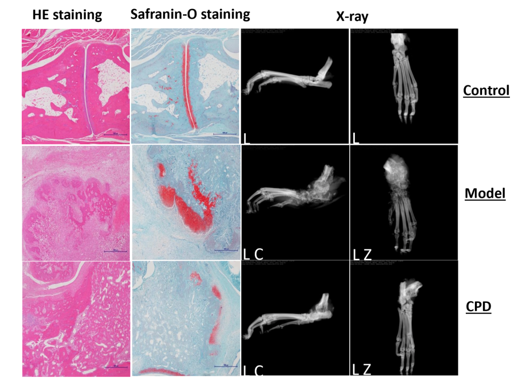 The model changes are also observable directly during the anatomical and histopathological evaluation below (CPD = tofacitinib).