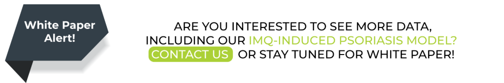 Complementing these in vitro assays, we offer robust in vivo models, including IL-23-induced psoriasis in mice, and IMQ-induced psoriasis model, enabling preclinical validation of drug candidate efficacy and mechanism of action studies.
