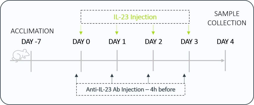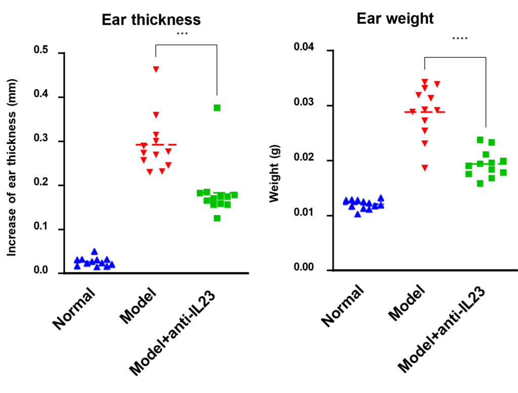 Our 4-day IL-23 induced psoriasis murine model allows for effective and fast screening for anti-IL-23 biologics
