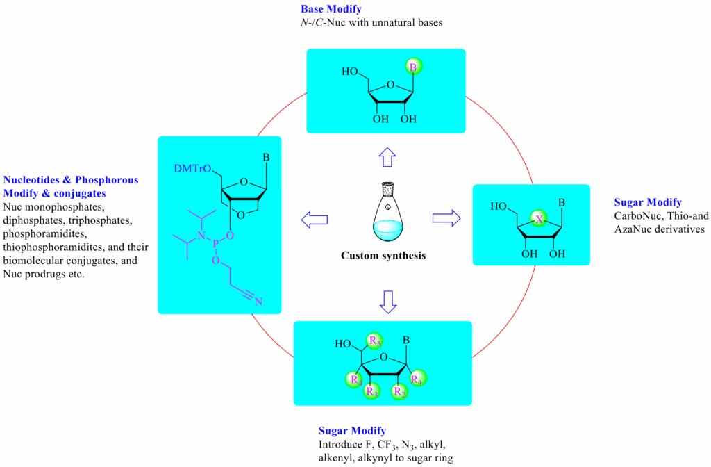 One of the biggest breakthroughs in this field is mRNA vaccines against Covid-19 developed by Moderna and BioNTech in 2021. The modification strategies and advanced delivery technology have made mRNA vaccines and other ODNs-based therapeutics become the research hotspot in drug discovery and development. Modification of the sugar moiety and the nucleobase moiety, as well as the phosphate backbone, can significantly improve the chemical / enzymatic stability and modify the immunogenicity of ODNs.