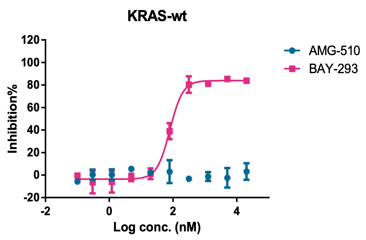 The inhibitory effect of AMG-510 and BAY-293 on KRAS-wt, KRAS(G12C), & KRAS(G12D)