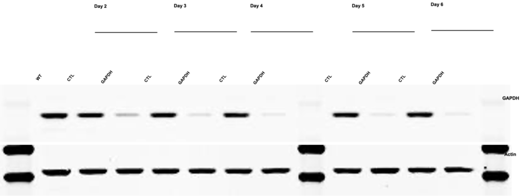 - Taqman or Western blot analysis to confirm the knockdown efficiency at mRNA level or protein level, respectively